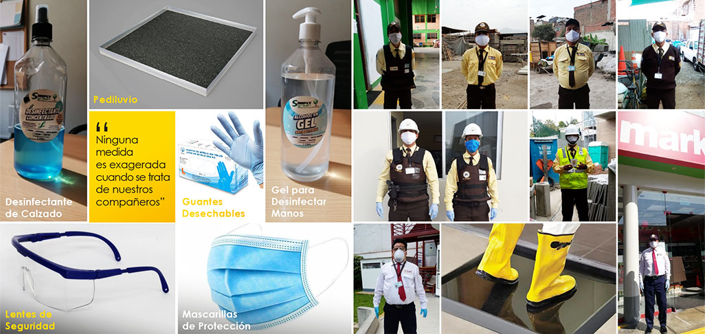 Durante el Estado de Emergencia Sanitaria a nivel nacional se ha implementado en todas las unidades de servicios de seguridad, equipos de protección individual – EPI (mascarillas, guantes y lentes de seguridad) que tiene como objeto interponer una última barrera entre el riesgo de contagio del COVID-19 y el personal de seguridad. Asimismo, se entregó a los agentes el kit de desinfección (gel para desinfectar manos, desinfectante de calzado y lejía) que es clave en la lucha contra la pandemia.