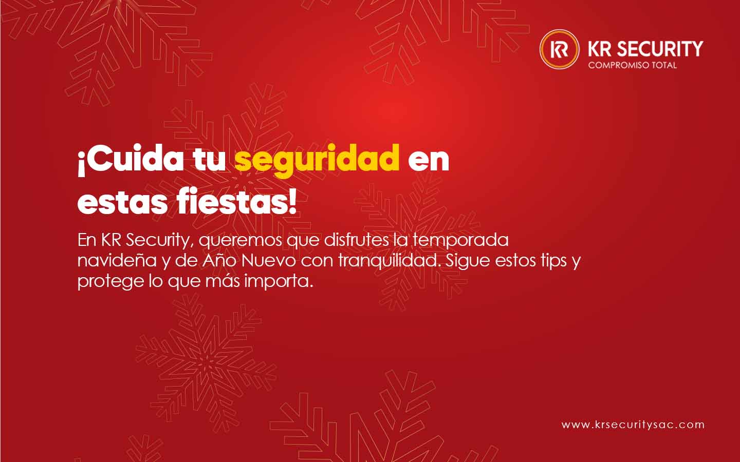 Recuerda que, en KR Security, estamos comprometidos con tu seguridad y bienestar. Siguiendo estos sencillos consejos, podrás disfrutar de unas fiestas seguras y llenas de alegría. ¡Que tengas unas felices fiestas y un próspero Año Nuevo!